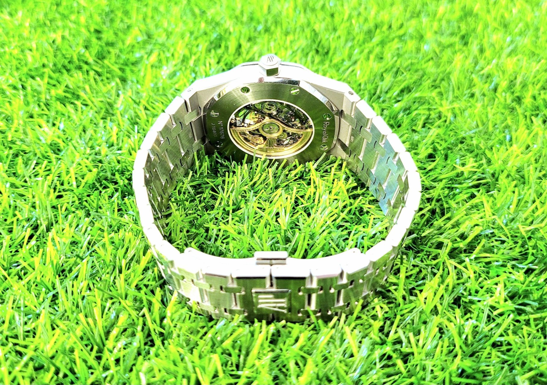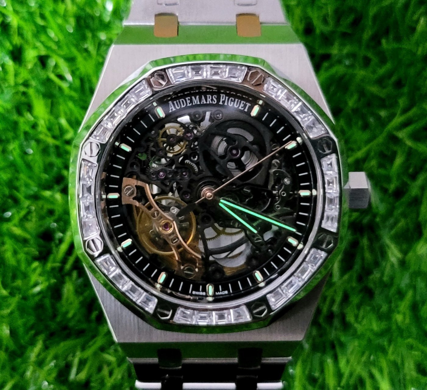 오데마피게 15407ST 로얄오크 더블 밸런스휠 스켈레톤 리얼 모이사나이트 커스터마이징 입고되엇습니다