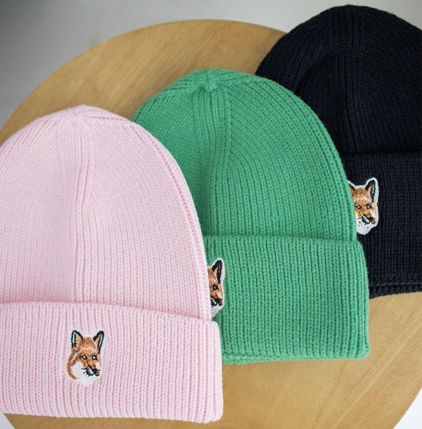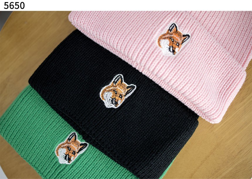 [Maison-Kitsune] 폭스 헤드 패치 립드 비니