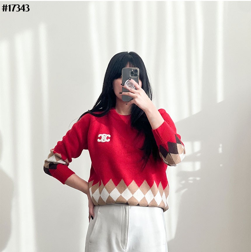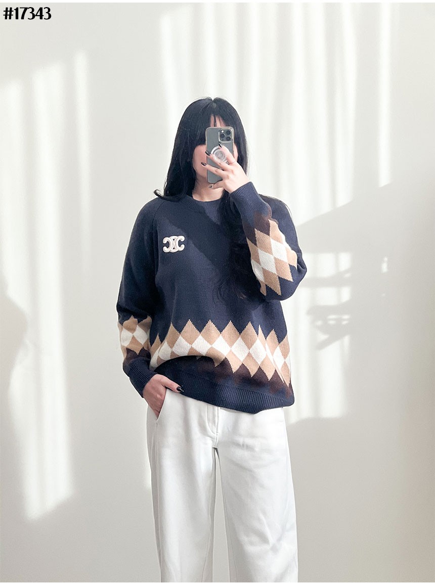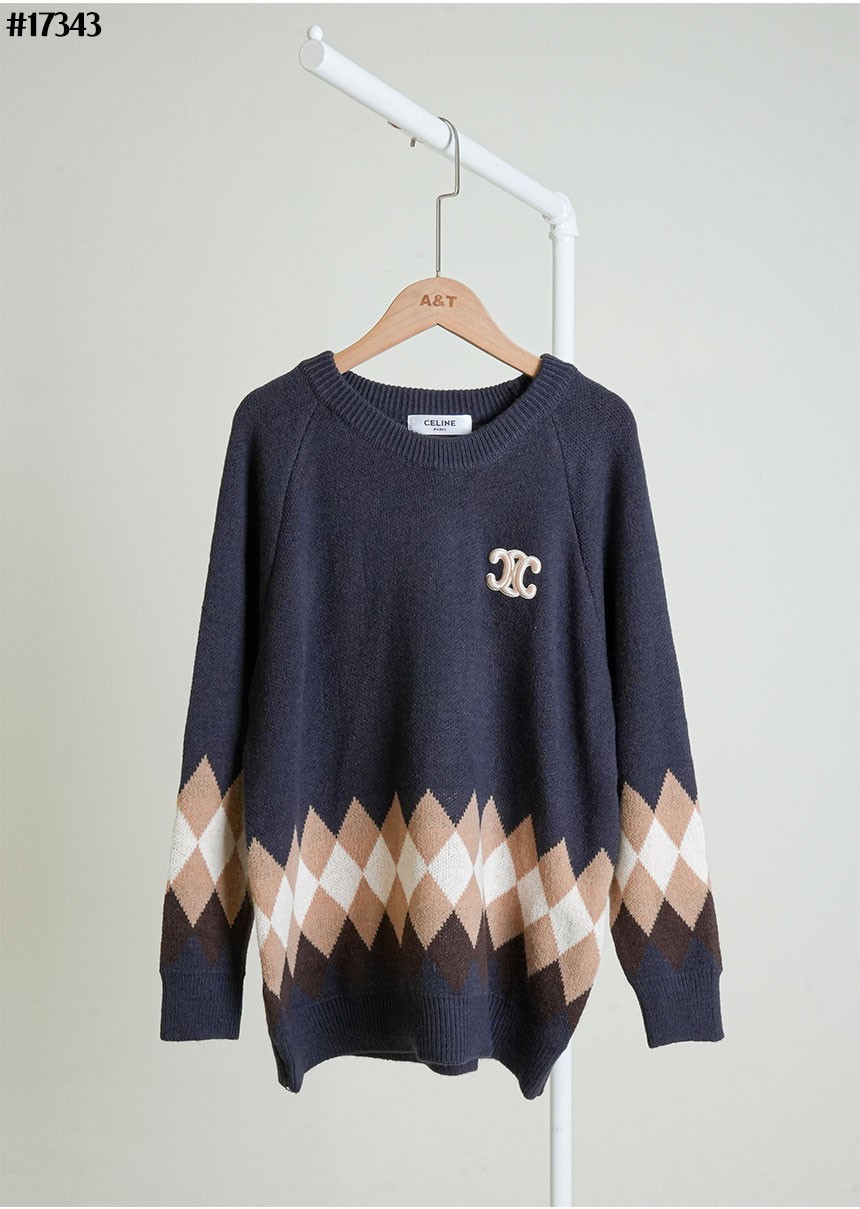 셀린느 트리옹프 아가일 울 니트 풀오버