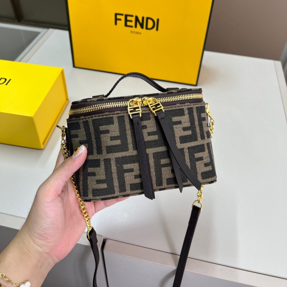 펜디 배니티 토바코 브라운 FF 자카드 패브릭 미니 백