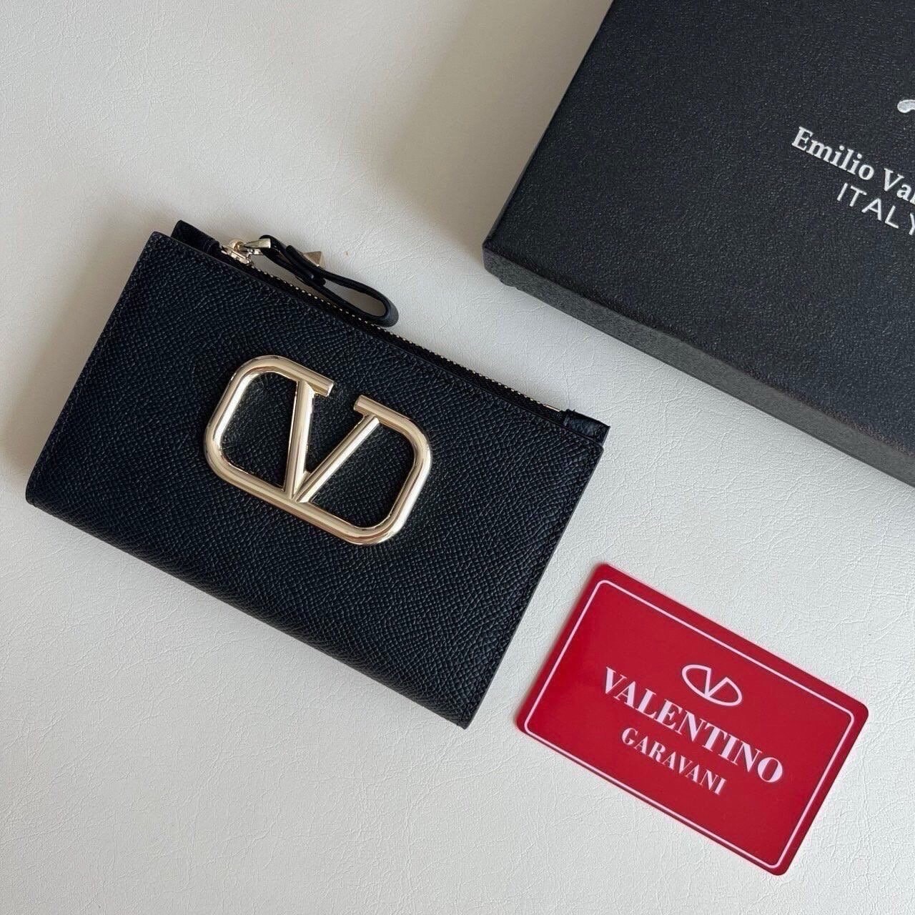 발렌티노 지퍼 그레인 레더 카드지갑