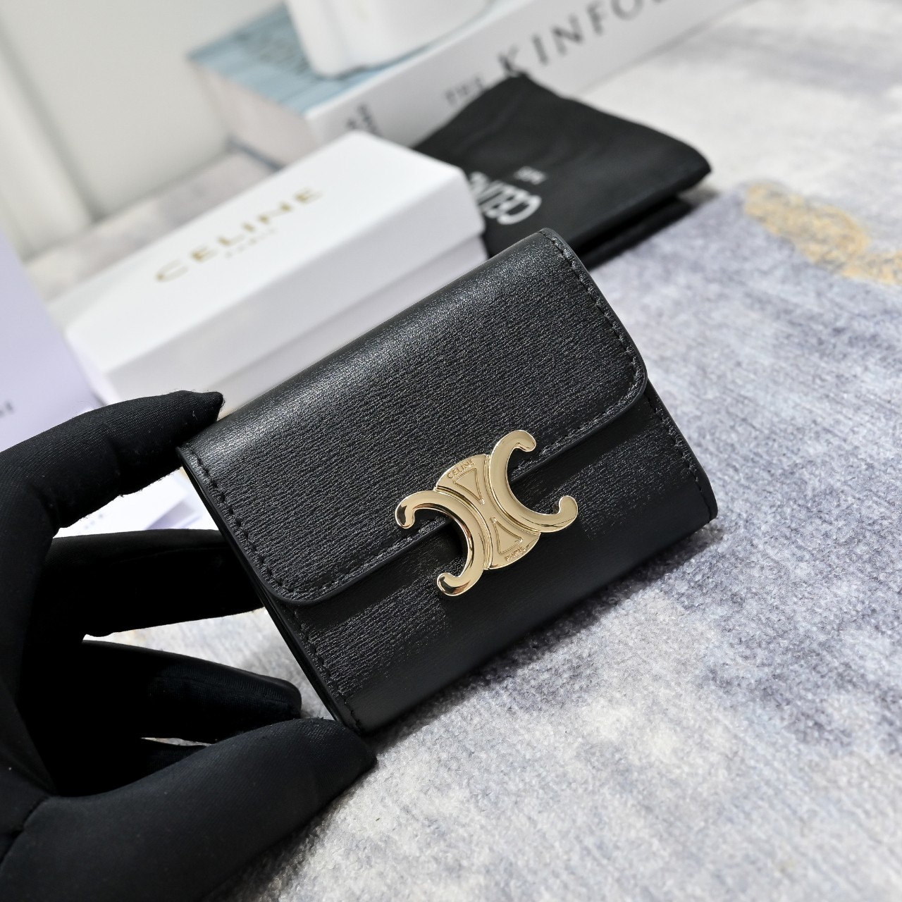셀린느 동전 컴팩트 지갑 블랙/탄