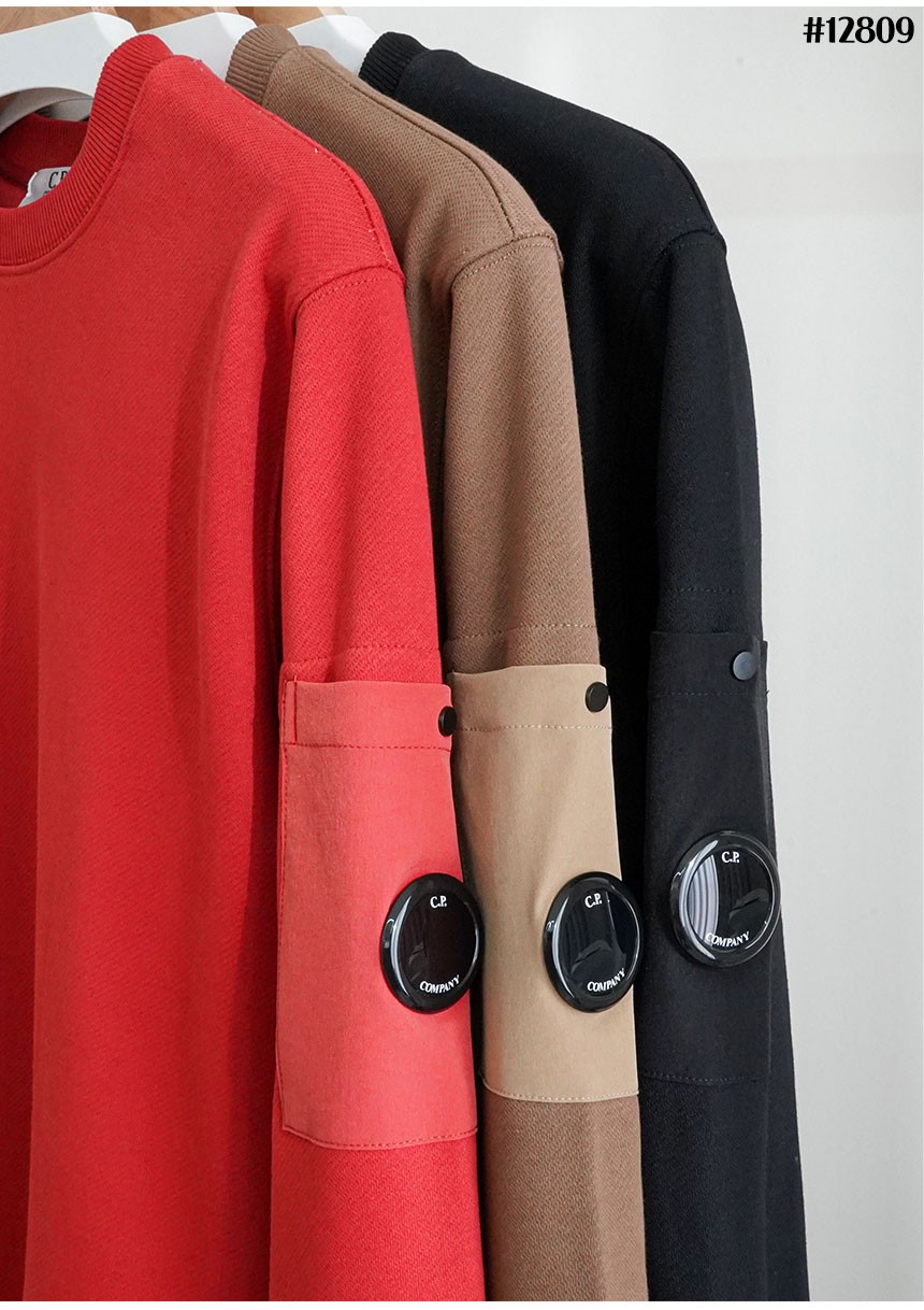 [CP.company] 씨피컴퍼니 수입프리미엄 남성 기모 클래식 포켓 렌즈 패치 크루넥 맨투맨 티셔츠