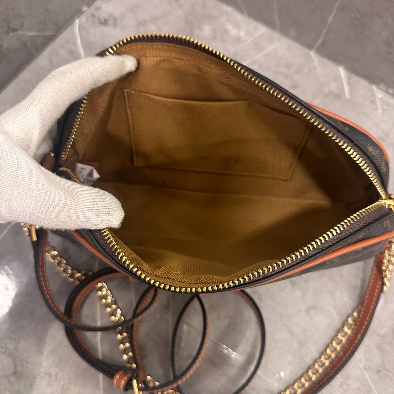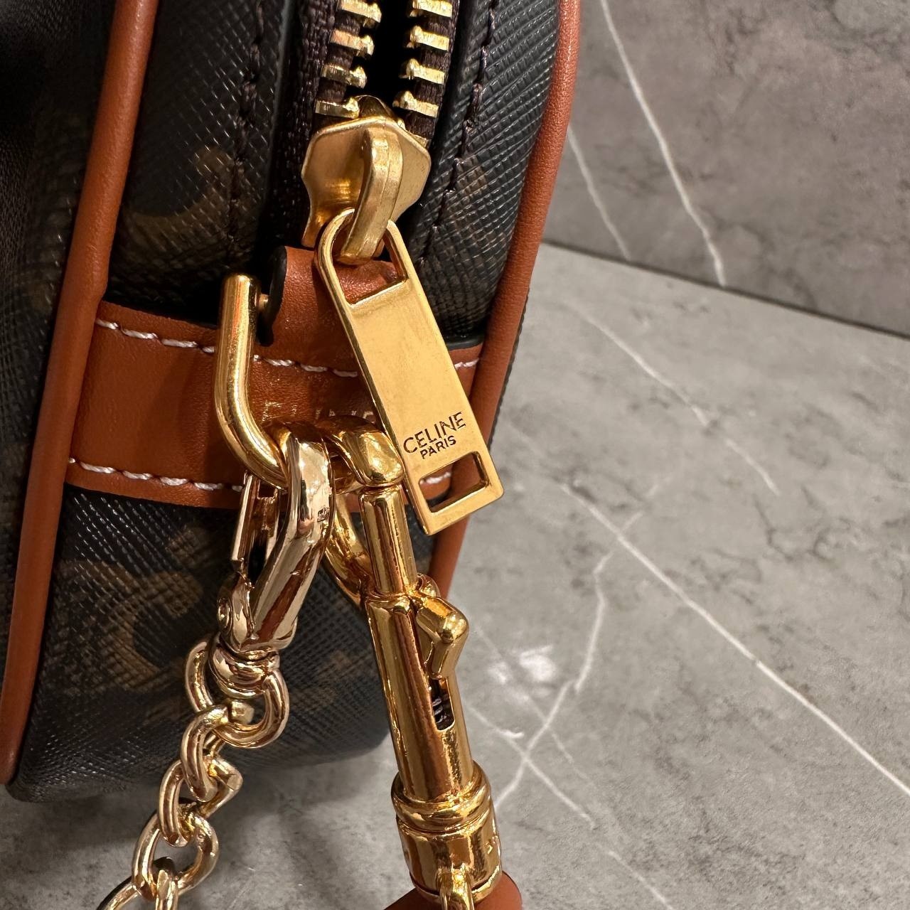 셀린느 멀티 백 트리옹프 캔버스 카프스킨 탄