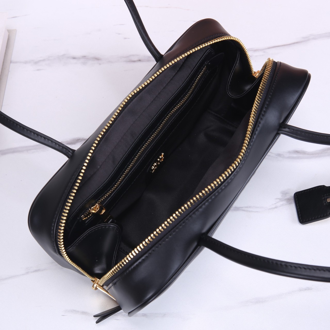 부드러운 카프스킨 소재에 레터링 로고 디테일을 더한 미우미우의 미니 핸드백입니다. 컴팩트한 직사각형 실루엣과 긴 탑 핸들이 특징이며, 잠금장치 디테일의 액세서리가 부착되어 있습니다. 세련된 디자인과 넉넉하지 않은 크기로, 가볍고 트렌디한 데일리 룩을 연출하기 좋습니다.