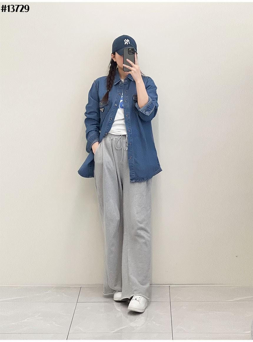 [PRADA] 프라다 여성 빈티지 포켓 삼각 로고 루즈핏 데님 셔츠