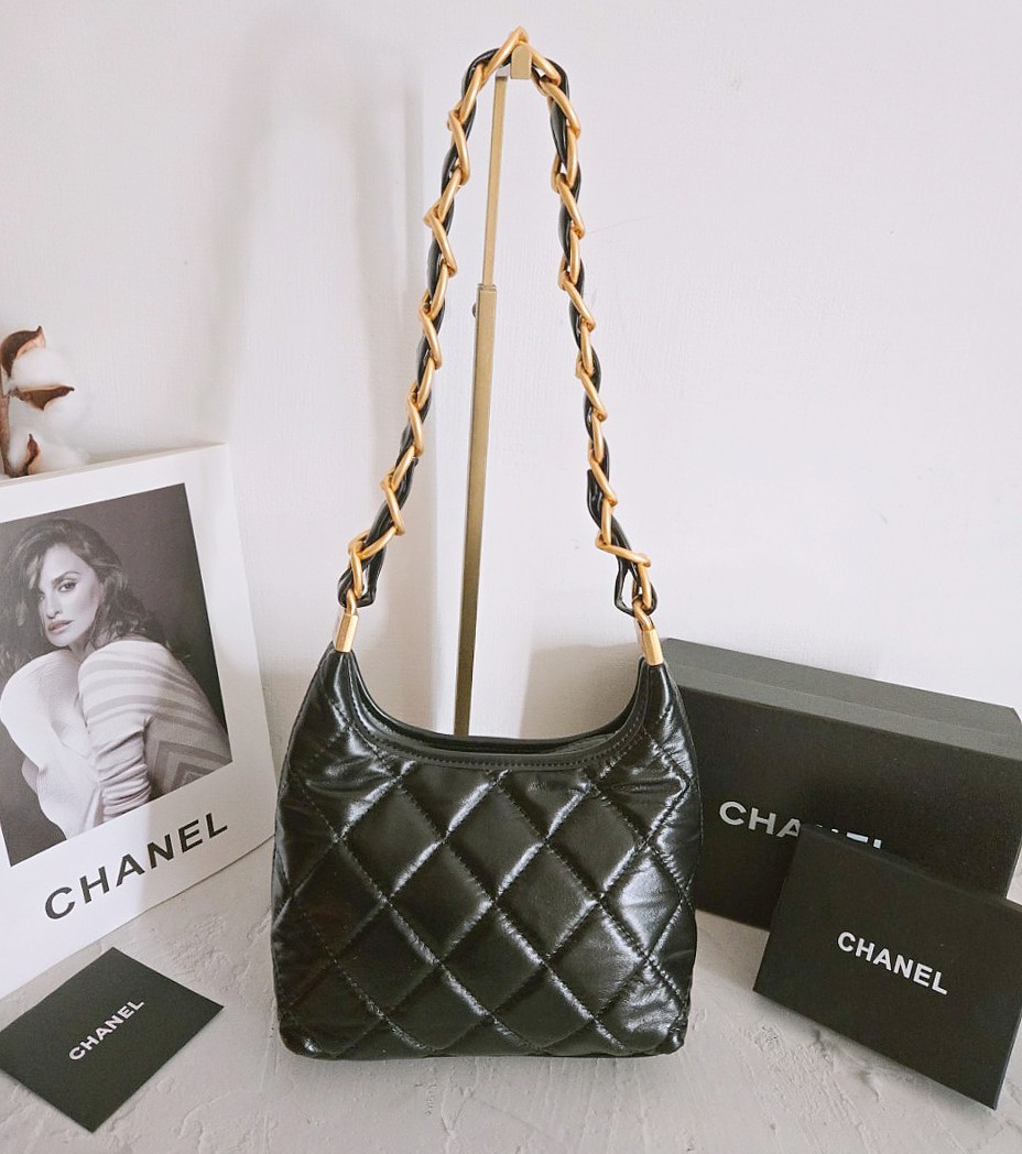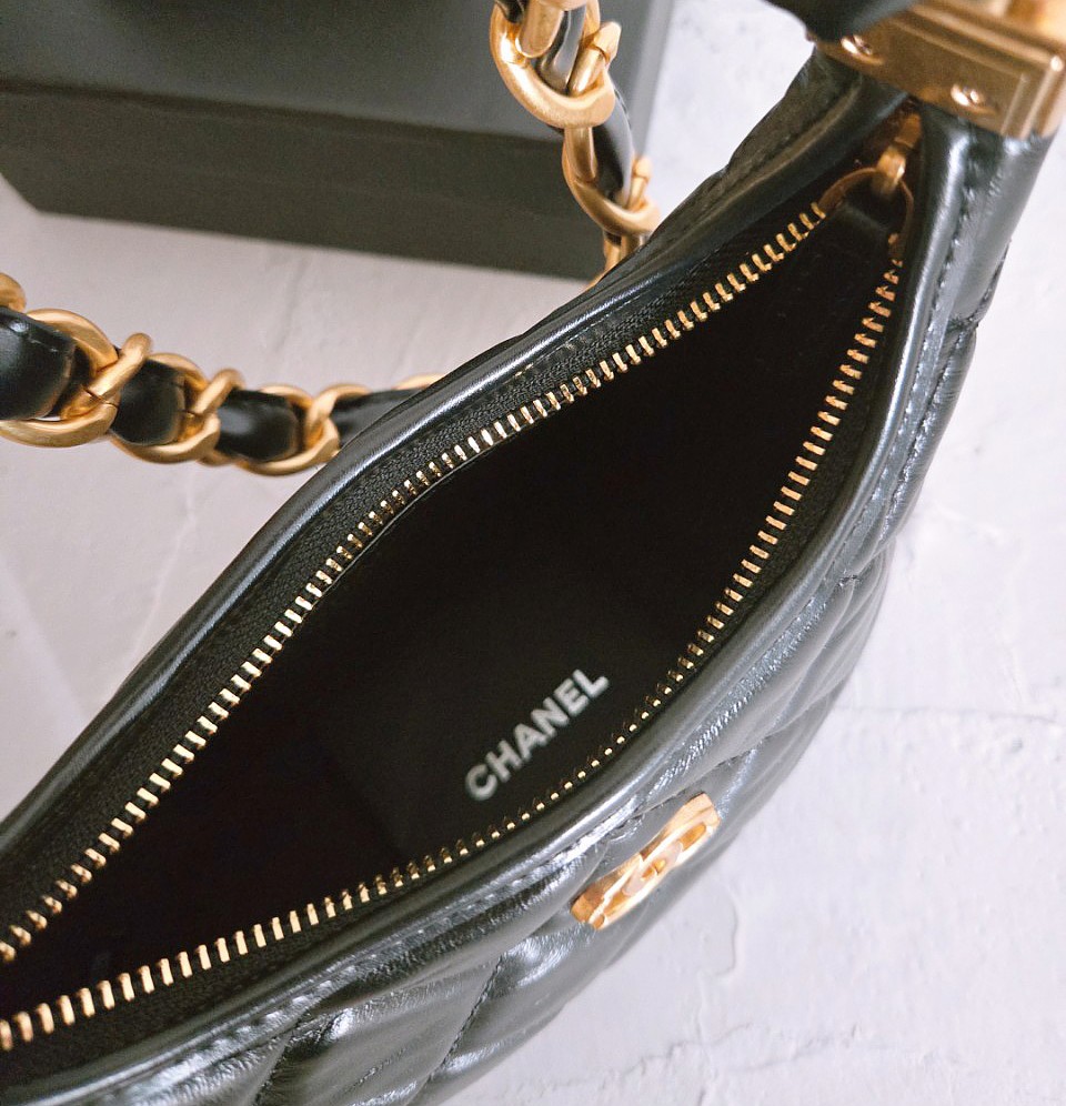 샤넬 호보백 스몰 램스킨 금장 블랙