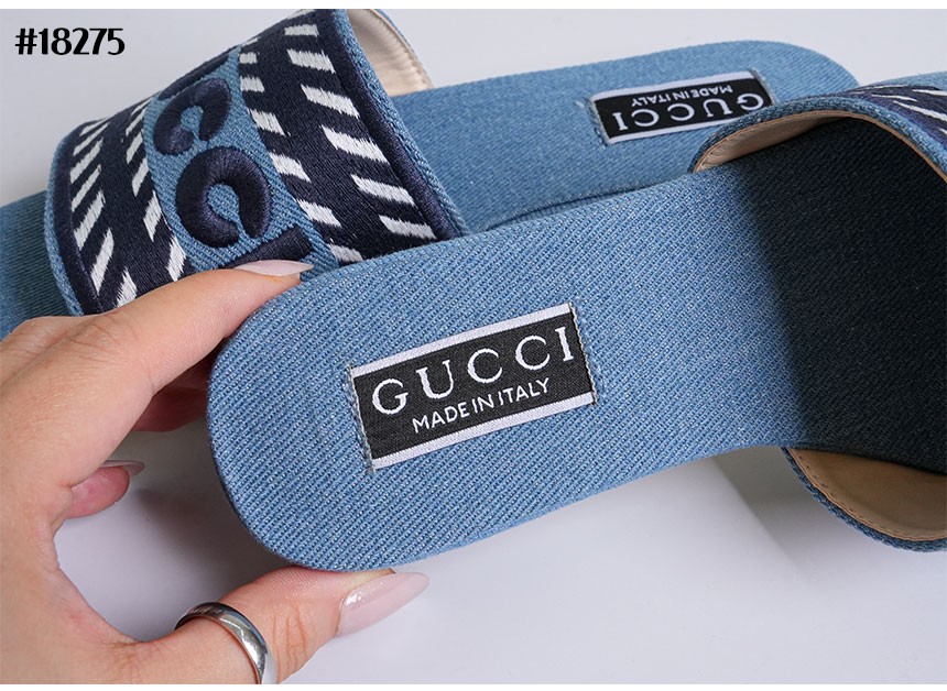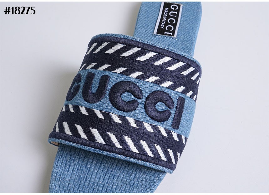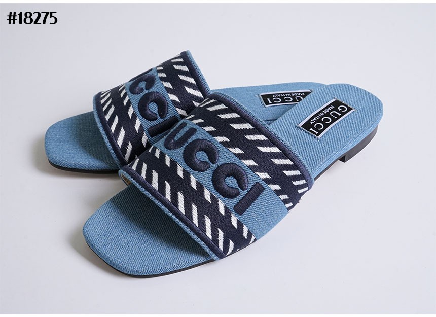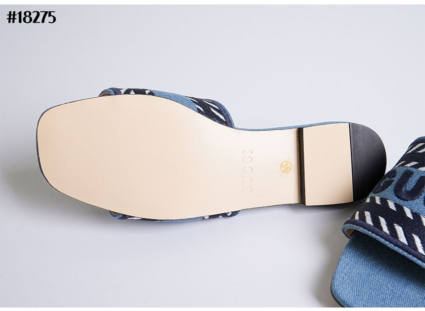 구찌 데님 스크립트 슬라이드 샌들