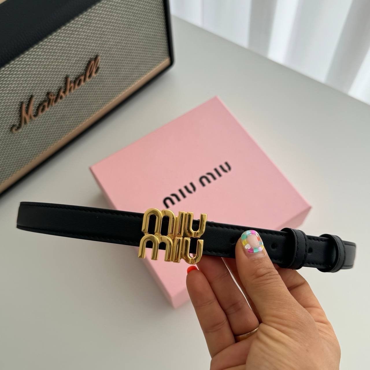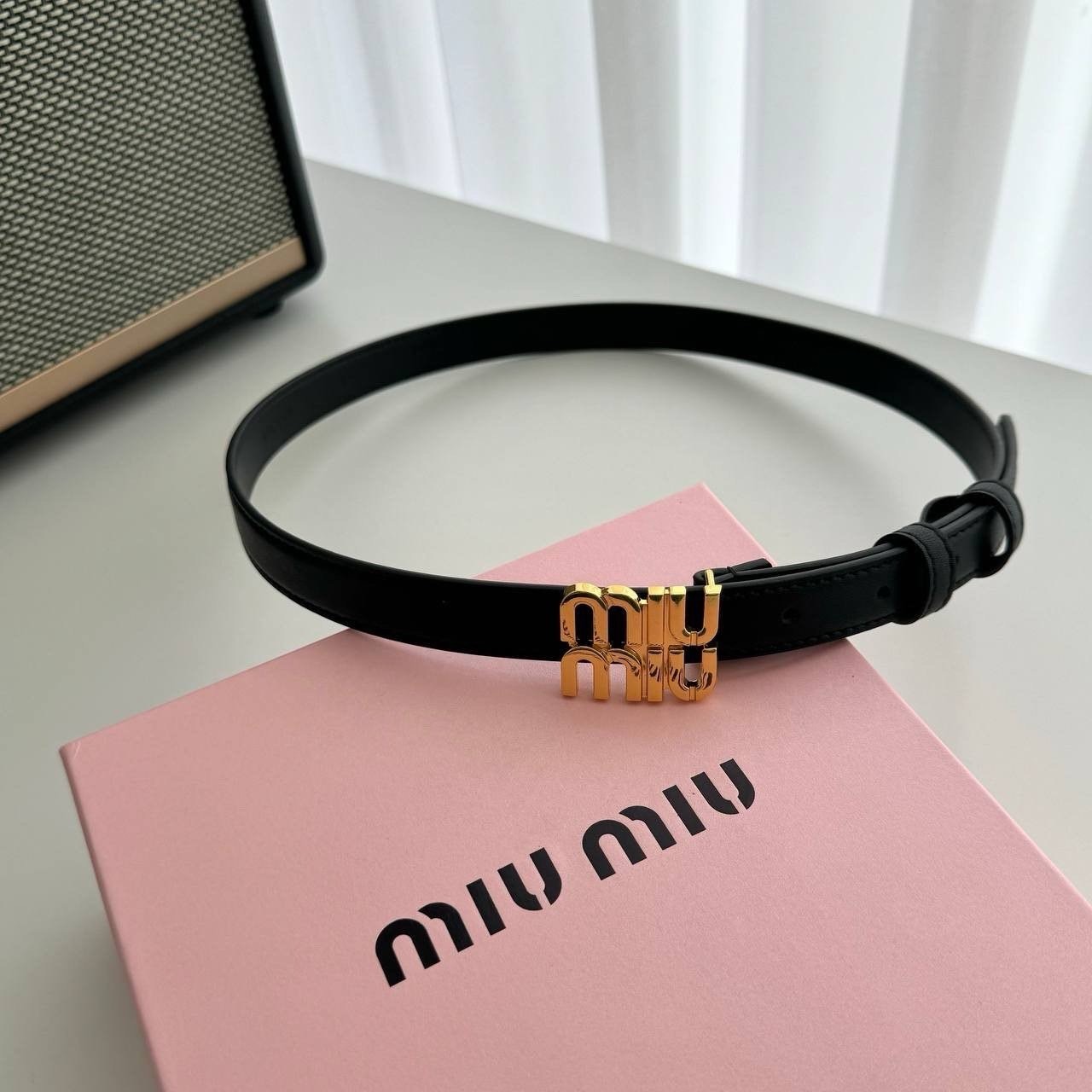 미우미우 로고 버클 가죽 벨트