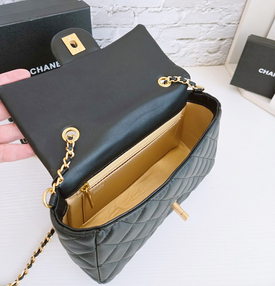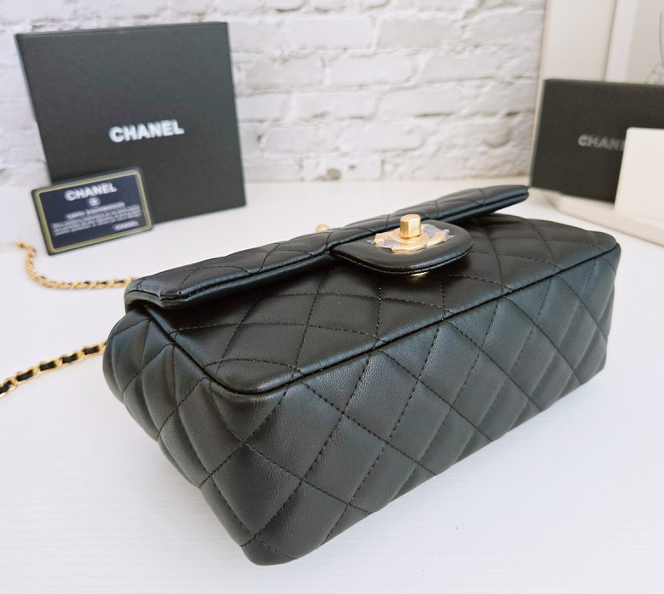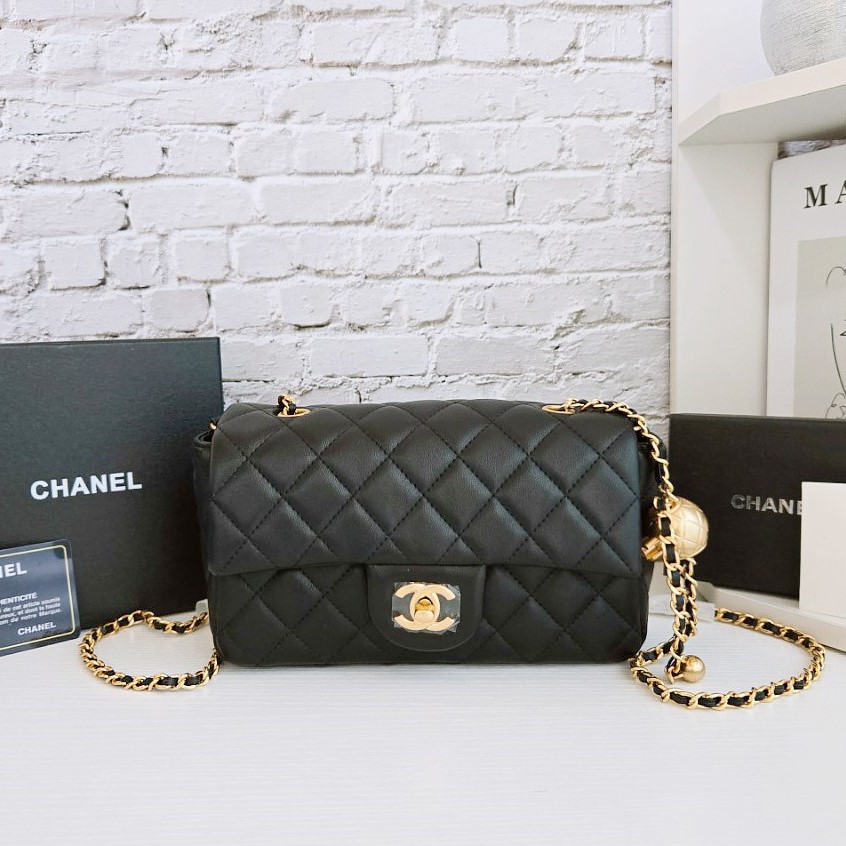 샤넬 뉴미니 골드볼 램스킨 블랙
