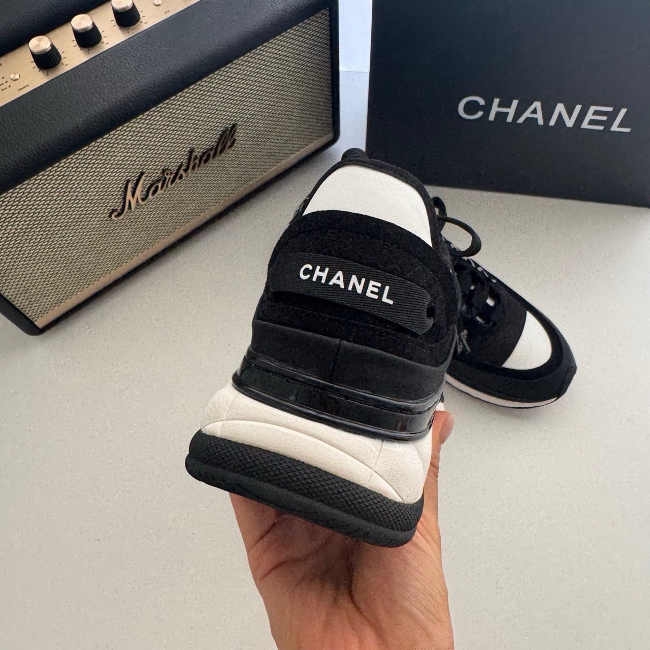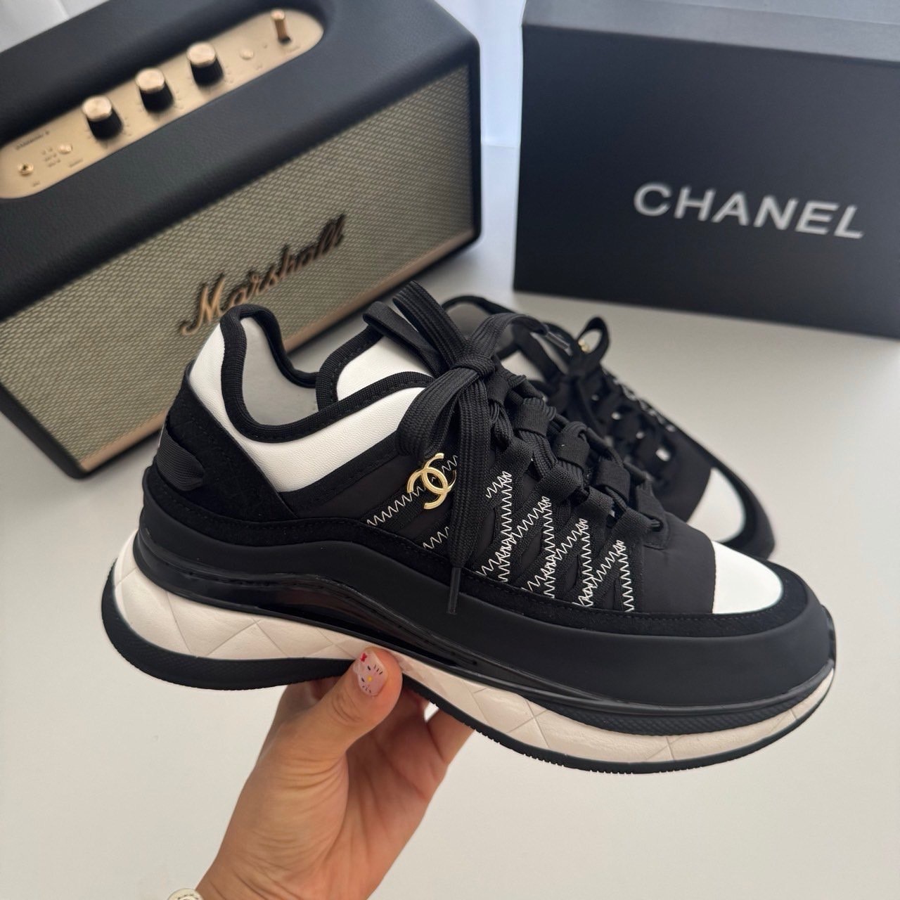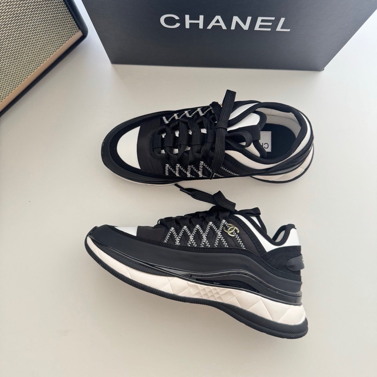 샤넬 코코마크 패브릭 스니커즈(블랙&화이트)