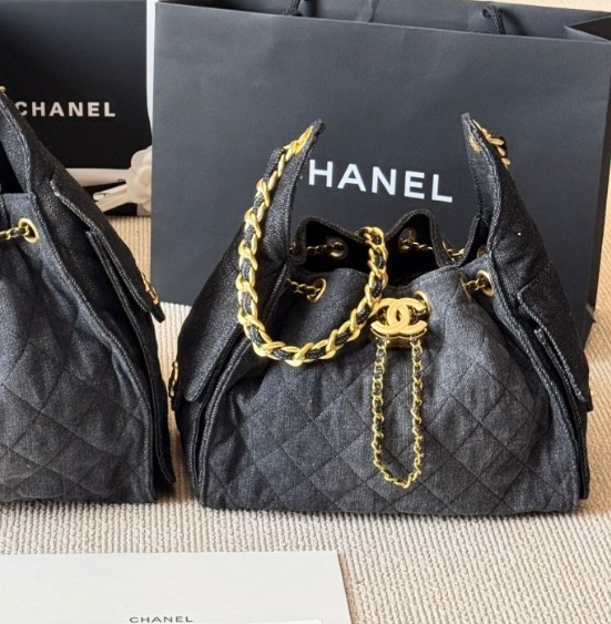 샤넬 25백 워시드 데님 골드 메탈 스몰
