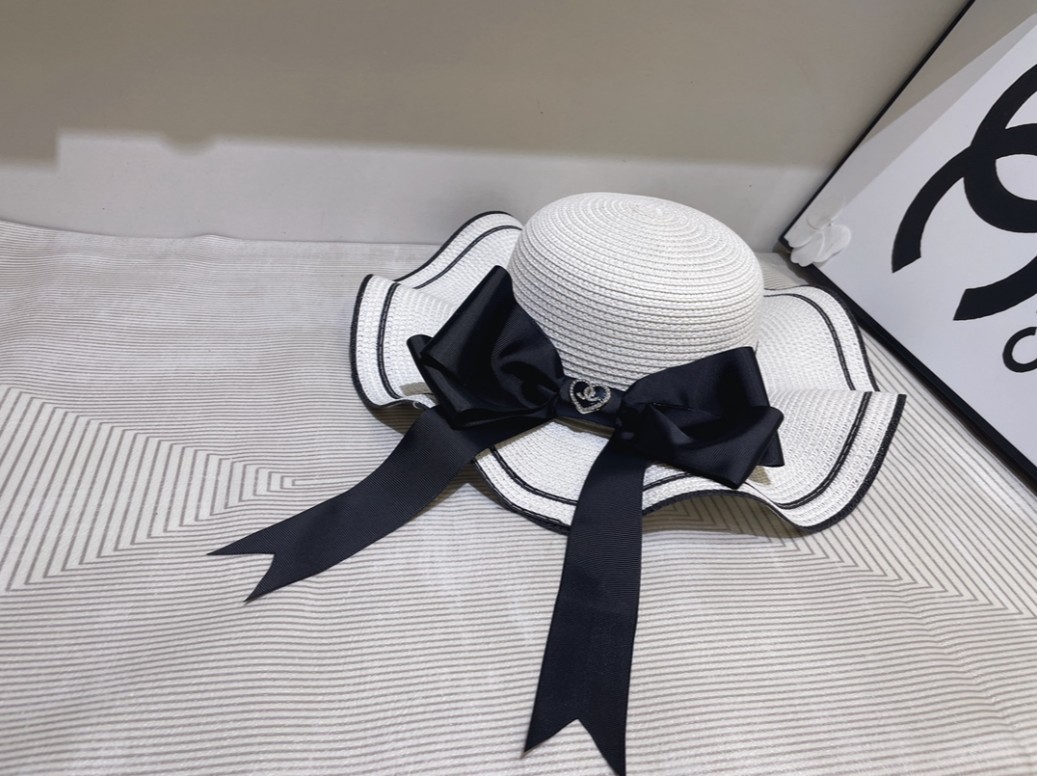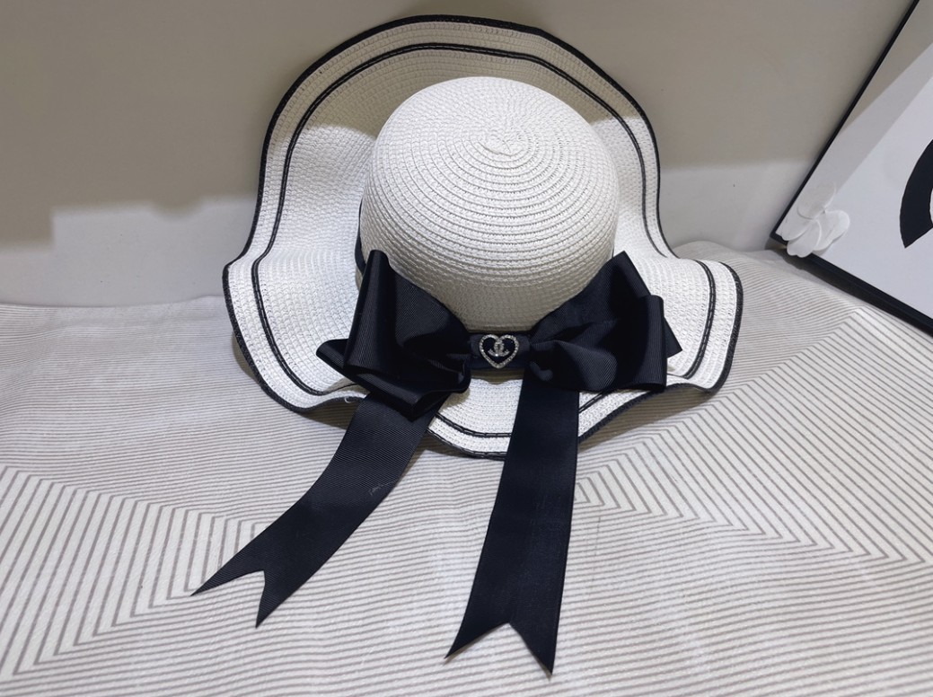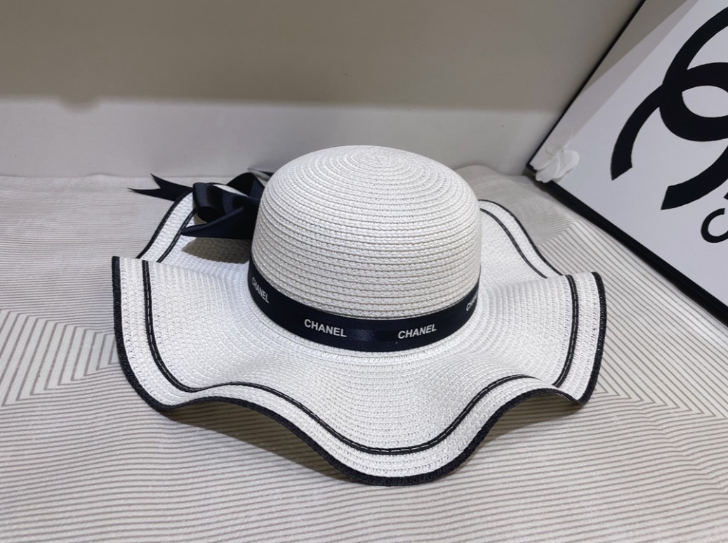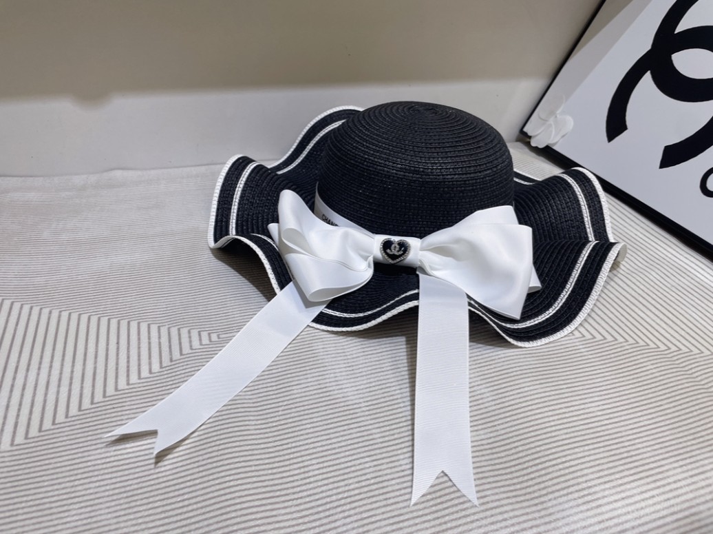 샤넬 리본 띠 벙거지 지사 밀짚모자 / 2COLOR