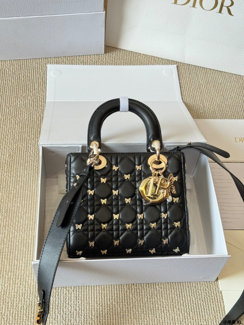 디올 스몰 레이디 백 골드 피니쉬 버터플라이 스터드 블랙