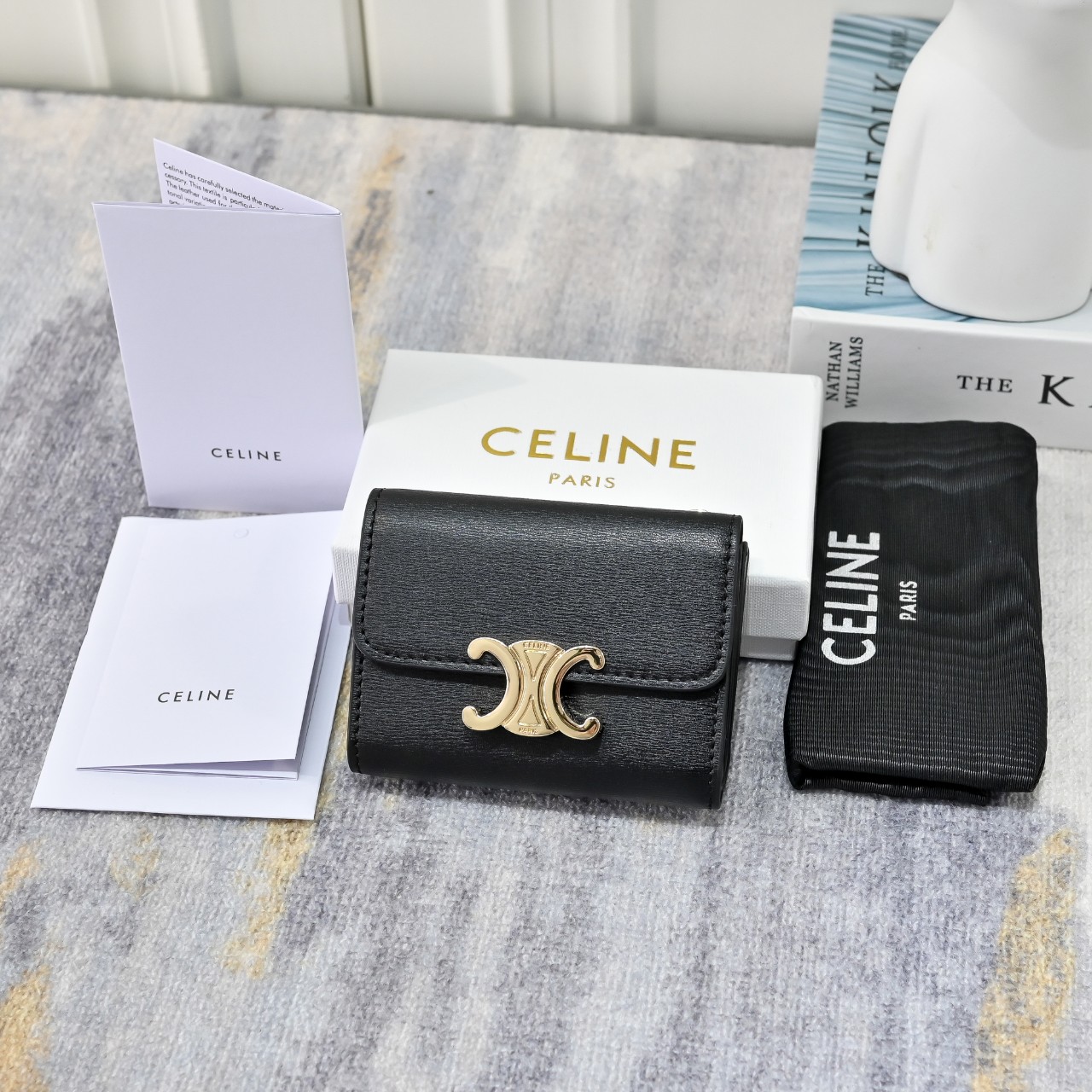 셀린느 동전 컴팩트 지갑 블랙/탄