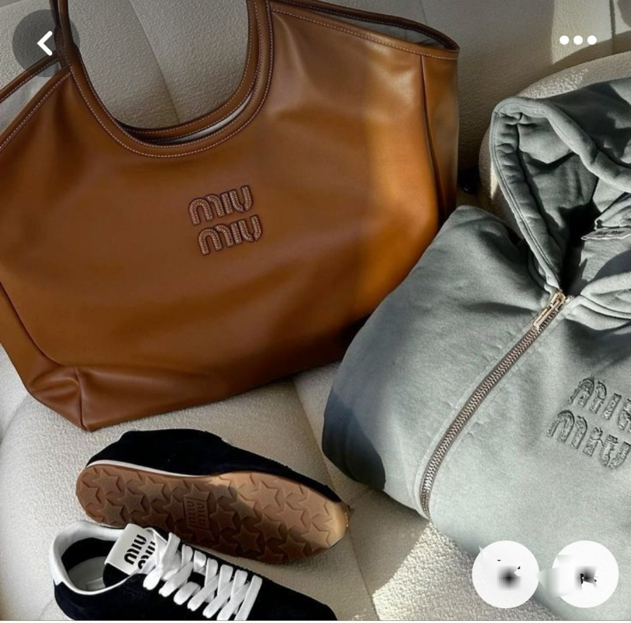 미우미우 아이비 가죽 라지백 브라운