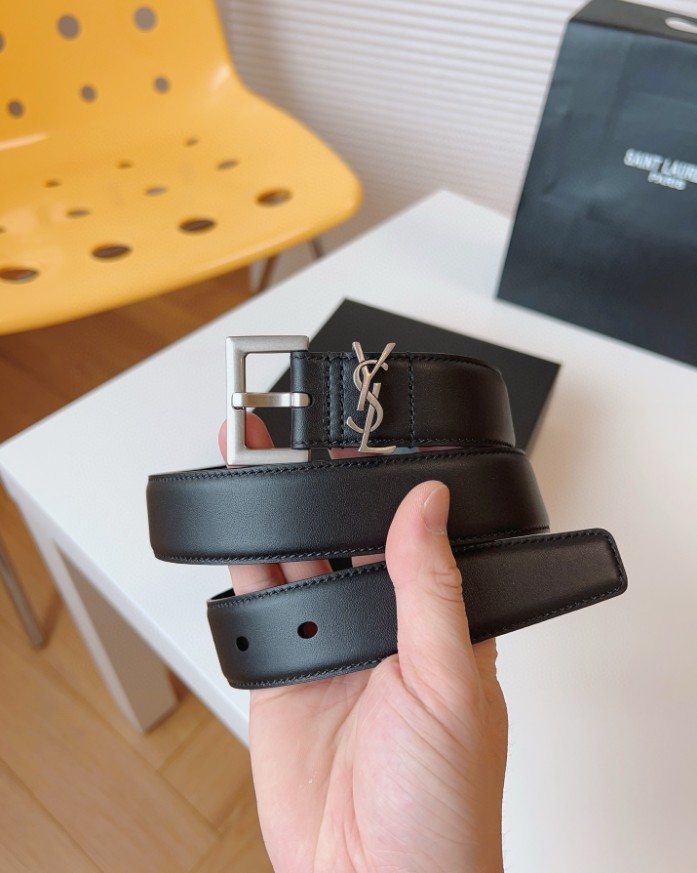생로랑 스무스 레더 골드 모노그램 벨트 블랙