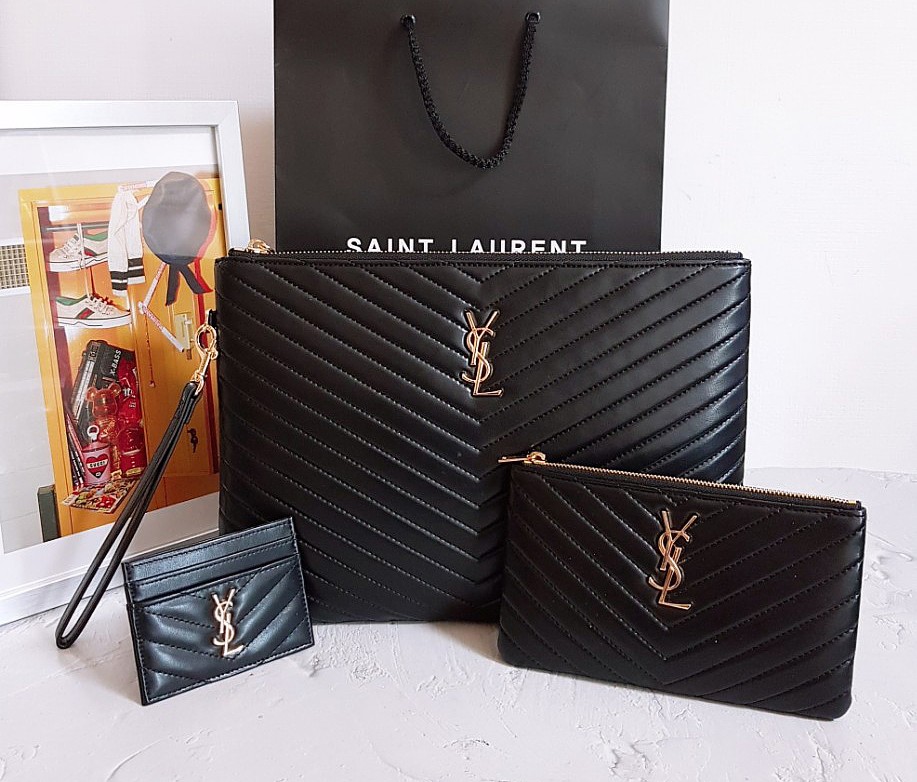 생로랑 모노그램 보아1 엔벨로프 3단 반지갑 흑장