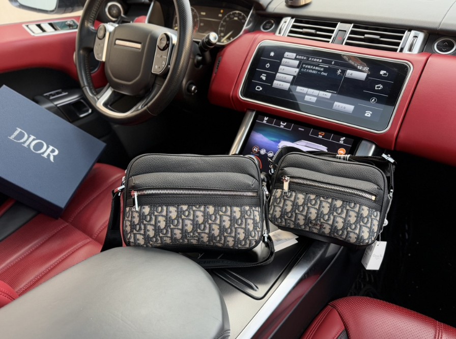 디올 Rider 2.0 지퍼 메신저백 베이지 & 블랙 Oblique 자카드