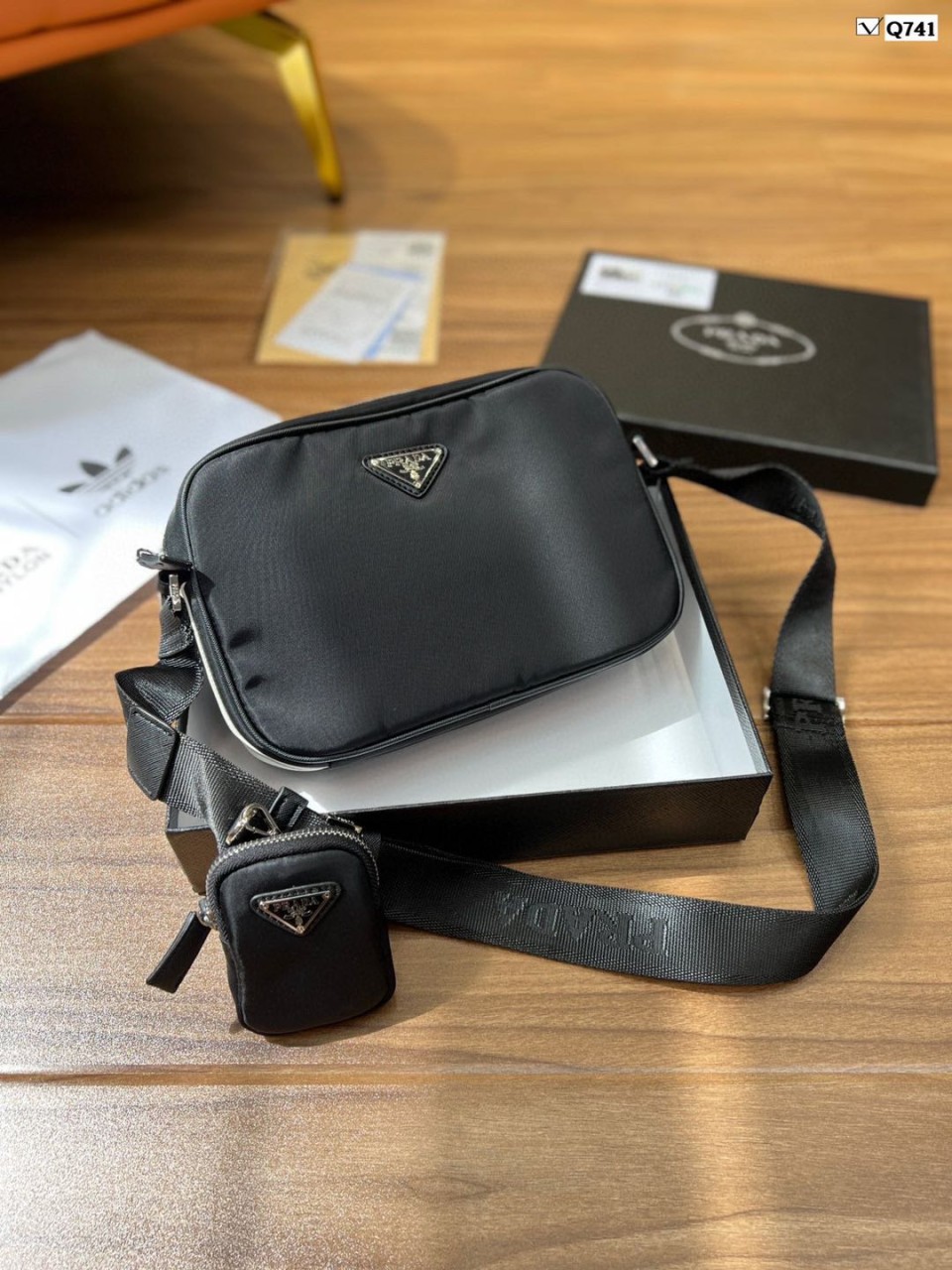 프라다 리나일론 나파 트라이앵글 퀼팅 패딩 더블 핸들 지퍼 포켓 토트 블랙