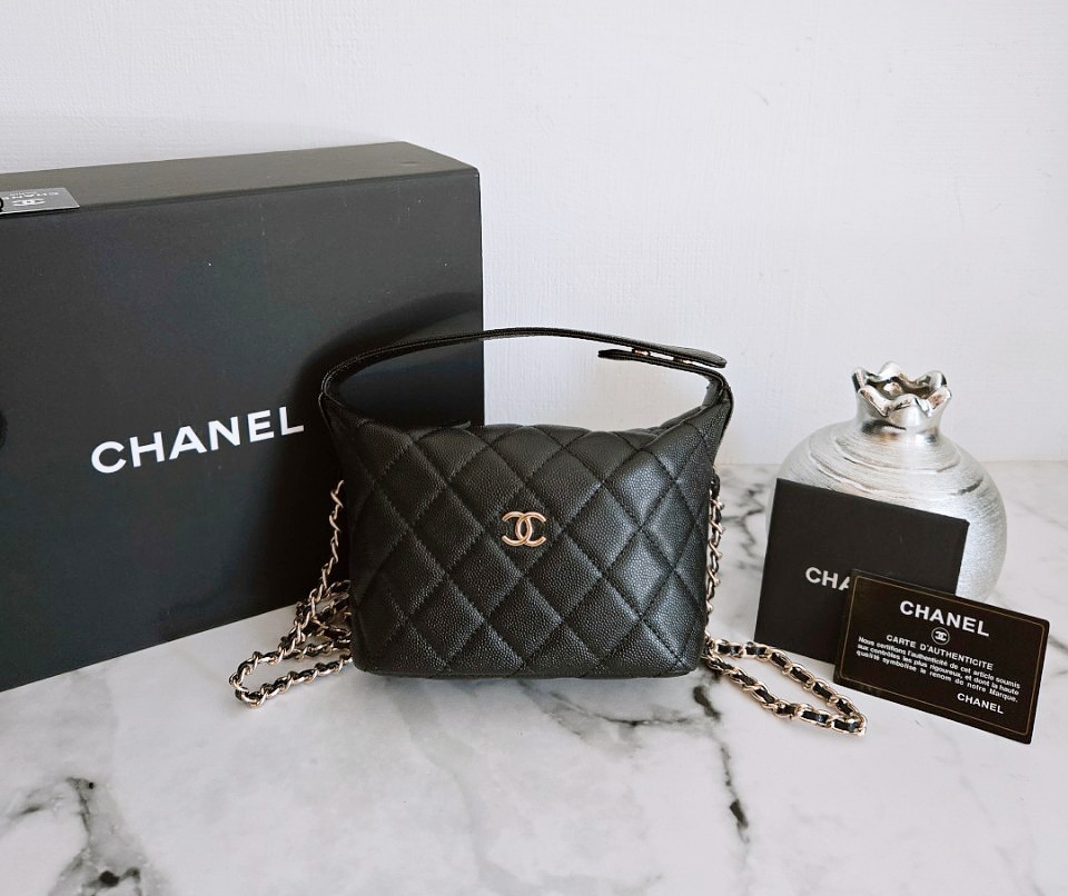 샤넬 캐비어 파우치 스몰 클러치 금장 / 은장