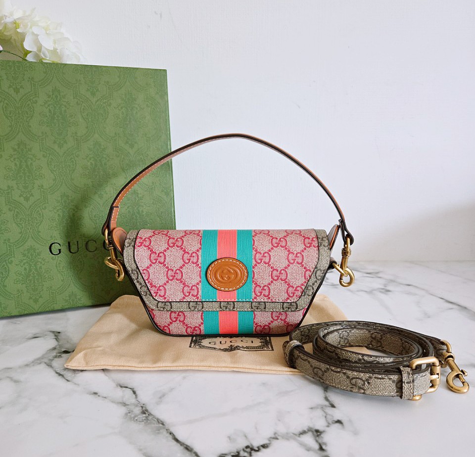 구찌 25년형 리뉴얼 웹(WEB) GG 탑 핸들 미니백
