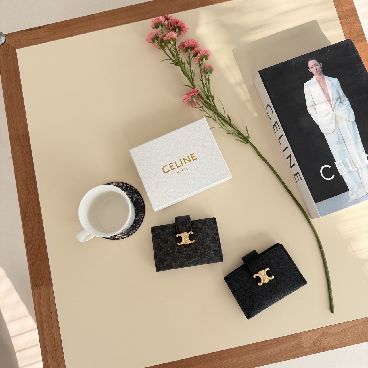 셀린느 동전 컴팩트 지갑 블랙/탄