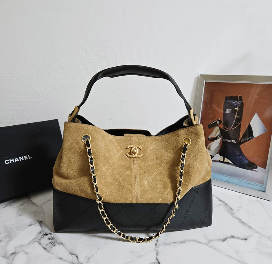 샤넬 25A 공방 스웨이드 투톤 쇼퍼 호보백 브라운