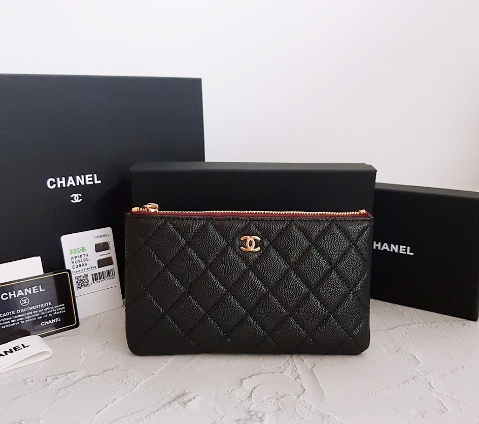 샤넬 캐비어 파우치 스몰 클러치 금장 / 은장